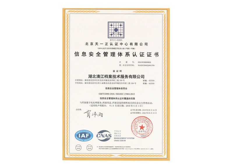 新信息安全管理体系认证证书