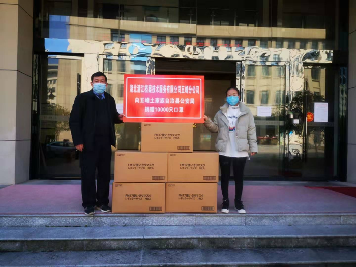 2020年2月11日,湖北清江档案技术服务有限公司五峰分公司向五峰土家族自治县公安局捐赠口罩10000只,以实际行动支援五峰土家族自治县的疫情防控工作,为抗击疫情贡献出一份力量!