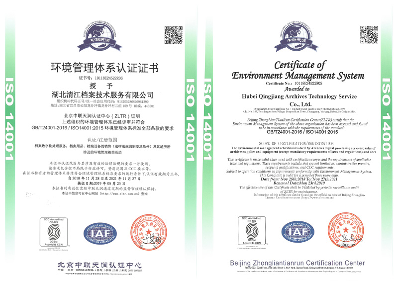 环境管理体系认证证书