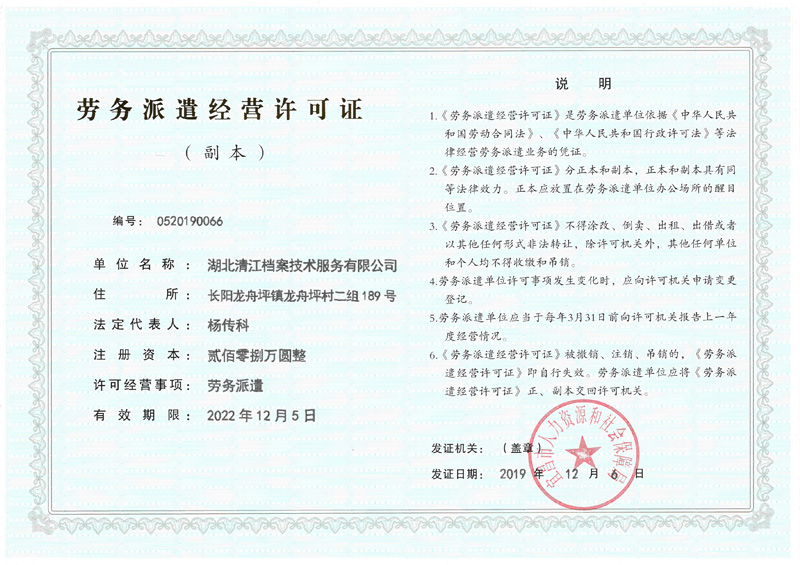 劳务派遣经营许可证