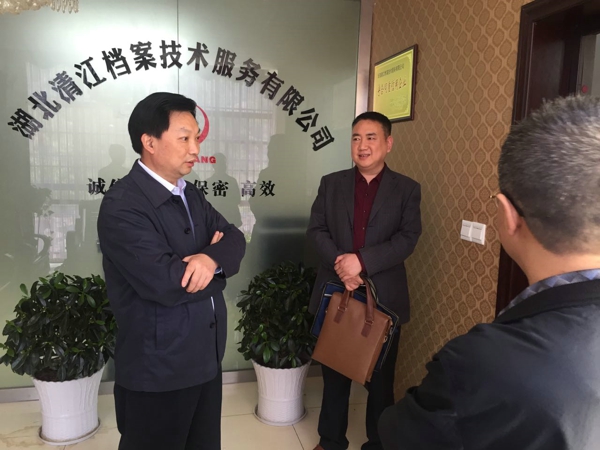 2018年4月27日,宜昌档案局严局长一行在长阳档案局谢远洲局长的陪同下莅临湖北清江档案技术服务有限公司考察指导工作。清江档案副总经理兼运营中心主管李娟同志就公司基本情况、项目进程及未来发展情况向领导逐一汇报,领导对我公司给予高度评价及认可。